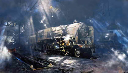 David also painted other images that related strongly with me as a child. My father worked for the East African Railways and Harbours and David seemed particularly taken with Africa’s steam engines, something dear to my dad’s heart too. Here’s David’s painting “On Shed” and anyone who can evoke this kind of atmosphere in a painting is deserving of attention.