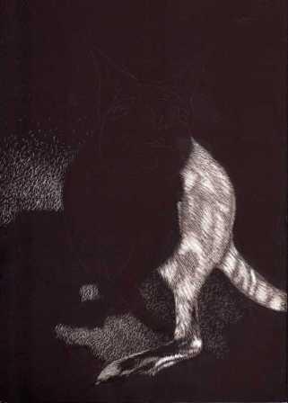 Anyway, fortunately I took many more appropriate photos and I’ve created a small scratchboard of a swamp wallaby. Here’s a little “work in progress”, from start to finish.