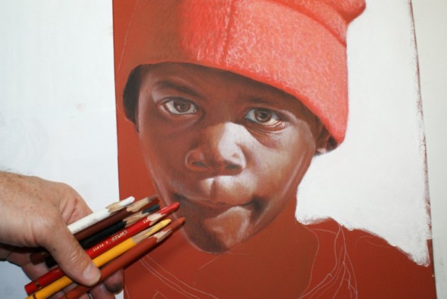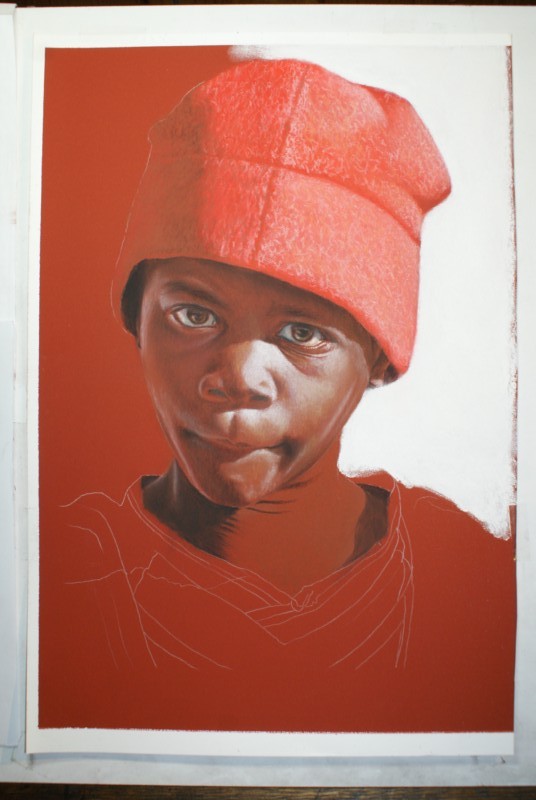 Here’s a small kid I came across in Namibia some months ago. Whenever I do a portrait of my choice (in other words, not a commission), I make certain I have a reason for doing it. In this case, it was the boy’s expression which shouted “paint me”.