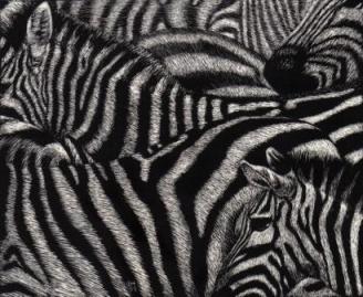 The International Society of Scratchboard Artists came about initially because we had noticed on many occasions artists commenting that the exhibitions they were entering work into had no category for our medium. When people asked organizers which category they should enter their scratchboards into, they would be told such things as ‘Works on Paper’ or ‘Drawing’. Sometimes we would be put in a ‘Multimedia’ category and some organizers have dared to tell us scratchboard might be better suited at craft shows without ever seeing our work or what scratchboard as a medium is capable of in the hands of good artists. Many members of the general public and artist communities alike have little knowledge of scratchboard.