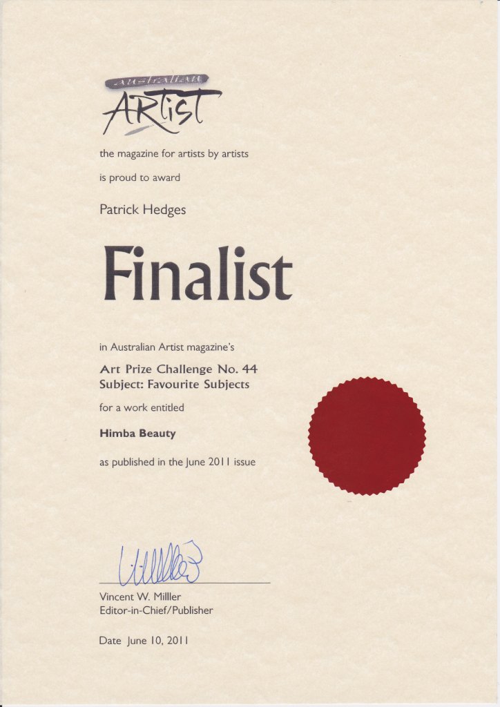 Australian Artist June Edition Himba Maiden finalist, Art Prize Challenge series 44 Certificate comp Published June 14, 2011 at 724 × 1024 in Awards ← Previous Next → Finalist, Australian Artist Magazine Challenge series 44 Like Loading...