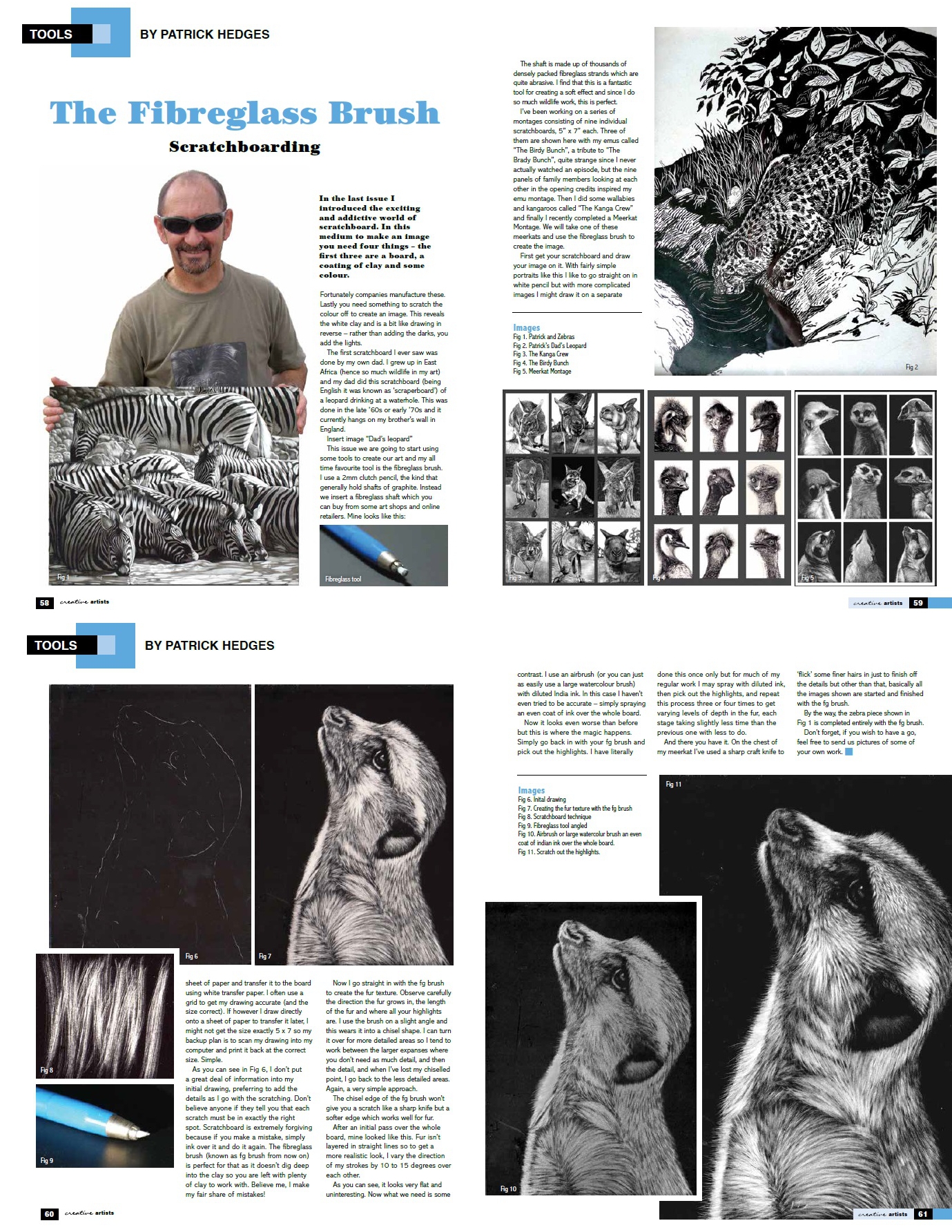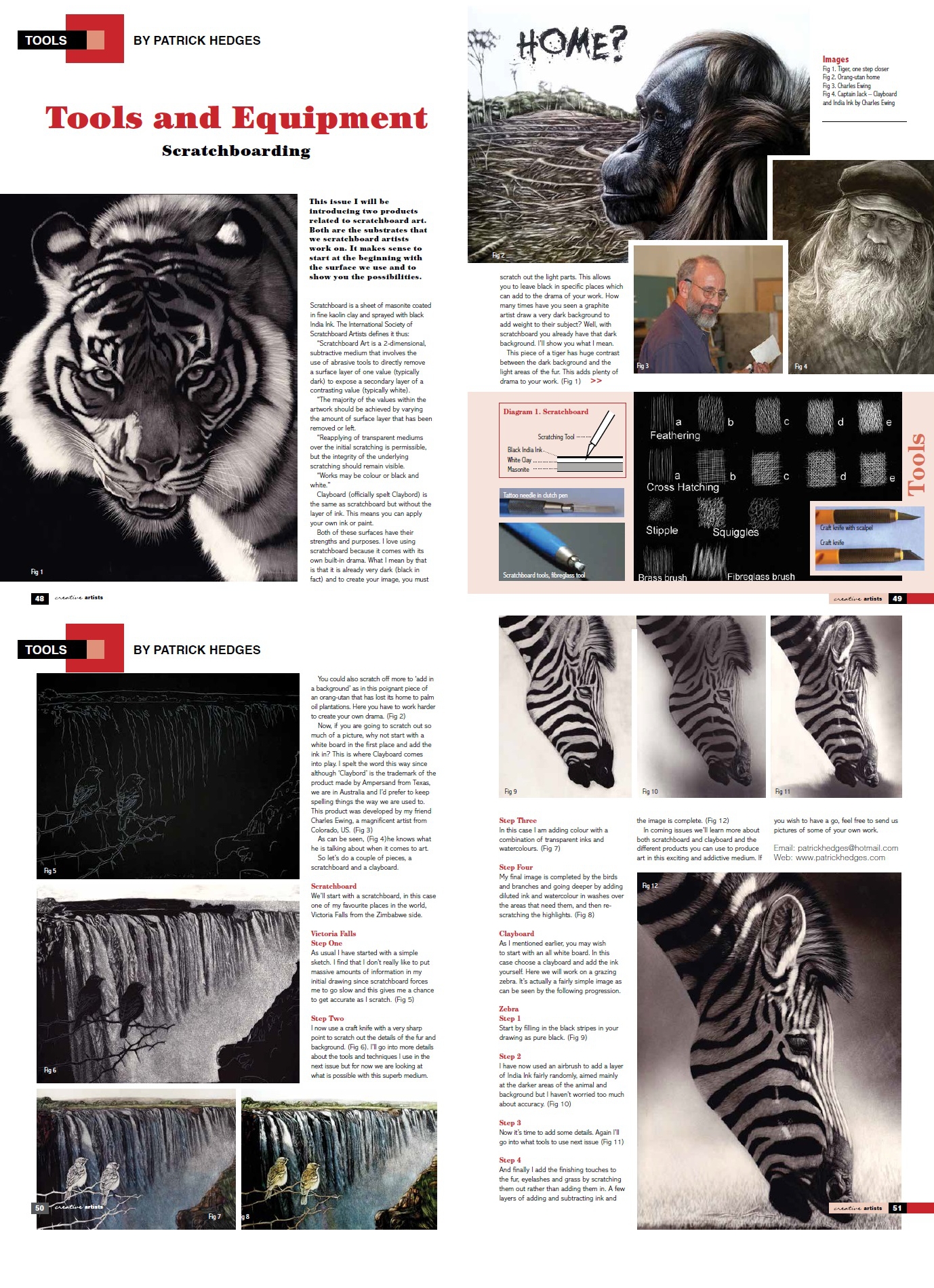 Article about the International Society of Scratchboard Artists which has two of my scratchboards (article written by Judith White MSA)