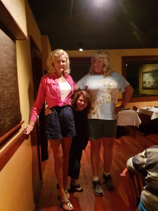 The long and short of it, SAA President Reneé Bemis being dwarfed by artist Rachelle Siegrist and board member Cynthie Fisher
