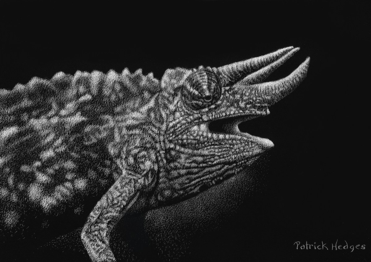 Jackson’s Three Horned Chameleon Published April 16, 2020 at 2064 × 1459 in Patrick Hedges, Wildlife and Portrait Artist ← Previous Next → Jackson’s Three Horned Chameleon Like Loading...